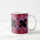 Cette tasse à café présente un bel art fractal avec un signe noir pour cent sur un arrière - plan abstrait rouge, rose et violet.
