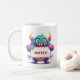Un petit monstre mignon et drôle tient une pancarte. Le mot "Noted" est entièrement réglable.