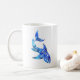 un design de tatouage décoratif avec un requin aux couleurs bleues sur une tasse à café.