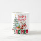 Hermoso diseño de navidad para maestros con colores tradicionales, rojo y verde, además tiene como elementos el arbol de navidad con luces y un oso polar maestro con su bufanda y sus libros, junto con un globo terráqueo y por su puesto en la punta del árbol la estrella de navidad. No dejes pasar esta gran oportunidad de beber tu té, café o chocolate cada mañana en esta hermosa taza.