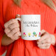 Imagine surprising your favorite teacher with this inspirational mug or buy it for yourself. Personalize it with a different saying and name along the top. Design also includes cute, fun images of books topped with a red apple, lightbulb and a globe with a world map. Perfect item to add to the classroom! Browse our matching products.