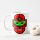 Une tête de robot en rouge avec un élégant panneau en forme de croissant vert, un troisième oeil vert, avec des dents blanches et des reflets. Il a une sorte de grain bizarre comme s'il a découvert les merveilles d'une nouvelle huile à moteur révolutionnaire. D'un dessin vectoriel original de N.A. Berry.