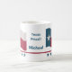 Montrez votre amour du Texas et profitez de votre boisson préférée avec cette tasse personnalisée avec les mots Texas Proud et personnalisée avec un nom. L'art original présente le drapeau rouge, blanc et bleu étoile Lone sur un arrière - plan blanc. Une bordure inférieure est faite d'une bande rouge avec une rangée d'étoiles bleues sous elle. Coordination des produits disponibles.
