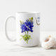 Design unique de tasse avec les fleurs de Bluebonnet du Texas et un Texas Longhorn. La fleur Bluebonnet est la fleur d'état du Texas. En mars et avril, ces belles fleurs fleurissent dans les champs et les autoroutes.
