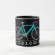 Cycologiste en texte blanc sur noir avec vélo turquoise en ligne grise.