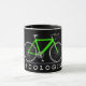 Cycologiste en texte blanc sur noir avec vélo vert citron sur ligne grise.