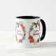 Une belle Mug Thanksgiving avec une gerbe de fruits d'automne, feuilles, gousses de graines et fleurs d'aquarelle, peinte à la main par Judy Adamson. L'arrière - plan montré est Blanc mais vous pouvez customiser cette Mug Thanksgiving en changeant la couleur arrière - plan et ce design s'adaptera à n'importe quelle tasse.