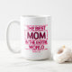 The Best Mom In The Entire World appreciation quote, written in vibrant pink, modern typography and accented with small matching hearts. This personalized coffee mug can be customized with your mom’s name, making it a heartfelt and meaningful gift for Mother’s Day, a birthday, or just because. You don’t need a special occasion to remind someone how truly special they are.