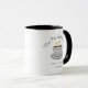 Simple et élégant mug de mariage café conçu avec une illustration de tasse à café avec un accent de cœur doré mignon. Personnalisez avec les noms des mariés et la date du mariage.