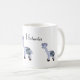 White alpaca doll with variegated blanket. Three images ranging from large on left to smallest on right. Personalize name at top.