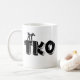 TKO écrit dans la police asiatique de style, écriture de l'anglais noir. Sur le dessus du technique frappez les initiales sont les silhouettes de deux combattants de MIXED MARTIAL ART sont économiquement, un gants bleus de port et un rouge, qui sont les couleurs traditionnelles de MIXED MARTIAL ART.