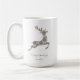 Élégante et tendance, cette tasse de Noël est un cadeau élégant pour les boissons chaudes d'hiver. Dispose d'un vintage motif de chinoiserie bleu toile derrière une jolie silhouette de rennes.