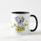 "LOVE MY DALMATIAN" déclare cette tasse pour le fier propriétaire de Dal. Chaque côté de la tasse a un beau portrait d'aquarelle d'un chien dalmate encadré de fleurs de tournesol et de feuilles verts. Mélangés sont des sprigs d'eucalyptus bleu vert. Entre les deux images est le texte, qui peut être facilement customisé, ou même supprimé, par vous.