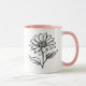 Tasse vintage à l'image noire et blanche d'une fleur simple et minimaliste. Image d'un tournesol de chaque côté de la tasse. Idéal pour une fête des mères ou un cadeau d'anniversaire.