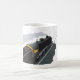 Un train à vapeur noir qui longe les pistes. Cette conception semble vraiment efficace sur ces Mug