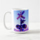 Photo colorisée sur la tasse du passage à niveau dans les violets. Bien sûr d'être apprécié par les passionnés de train dans votre vie.