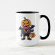 Caractère d'Halloween avec une tête de citrouille et ailes de chauve-souris offrant un tour ou des gâteries