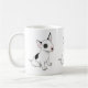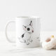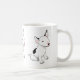 Si vous êtes un amateur de taureau blanc classique, cette tasse de design motif répétée est pour vous. Trois petits petits, blancs et blancs avec des patchs.