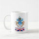 Célébrez l’un des territoires habités les plus éloignés du monde avec cette Mug de café Tristan da Cunha, un hommage significatif qui met en valeur les armoiries distinctives de l’île. L'emblème comprend un bouclier bleu et blanc avec quatre albatros, flanqué de deux homards rocheux de Tristan, et surmonté d'une couronne navale tenant un longboat traditionnel de Tristan, symboles riches en patrimoine maritime et en résilience. Ci-dessous, la devise dit : "Notre foi est notre force." Parfait pour les voyageurs, les collectionneurs ou les admirateurs de cultures uniques, ce mug en céramique durable allie élégance et histoire, idéal pour un usage quotidien ou comme souvenir de départ de conversation.