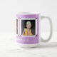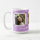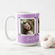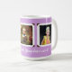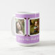Photo cadeau mug pour maman ou grand-mère en lavande violet avec trois modèles photo encadrés pour des photos des enfants / petits-enfants. Ajoutez un message personnel dans un script moderne sous les images, qui sont encadrées dans des supports à l'ancienne.