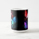 Trois papillons lumineux, rouges, violets, verts, texturés, nocturnes sur arrière - plan noir lumineux.