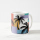 This vibrant artwork blends tropical palm silhouettes with a geometric backdrop of rectangles in warm, sunset-inspired colors. The bold contrast between the black palm trees and the colorful, modern blocks creates a striking visual that evokes a retro beach vibe. The design combines tropical elements with abstract geometry, making it ideal for contemporary decor or beach-themed graphic projects.
