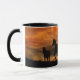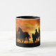 Belle, cette image primée a un troupeau de chevaux au crépuscule avec des couleurs du sud-ouest dans le ciel. Une belle tasse équine.