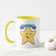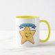 Adorable étoile de dessin animé jaune vif avec un grand sourire heureux sur le visage. Une bannière bleue au-dessus disant Vous êtes une étoile.