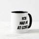 tasse de café blanche avec handel noir et noir à l'intérieur avec des lettres noires "Tu m'avais au café."