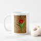Tulipe rouge de printemps, contre une roche brune au lac Arrowhead. Photo de Sandy Closs. Pâques, floral, fleurs rouges, Printemps, Saint-Valentin, valentines, mariage, mariage, Saint Valentin