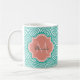 Un chic tasse motif à échelle verte et turquoise avec un badge en quatrefoil rose clair que vous pouvez personnaliser en ajoutant facilement votre monogramme et votre nom. Il fait partie de la collection de printemps de poissons Arcadia en fleurs Dahlia Monogram.