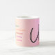 Cette tasse sera un favori pour tout le monde, de votre petite-mère douce à votre soeur adolescente. Avec le bon message, un mug peut devenir le compagnon précieux de n’importe qui pour les années à venir. Ce design présente une belle lettre "U" dessinée à la main en noir cursif sur un arrière - plan d'aquarelle étonnant. Le côté gauche présente un dégradé chaud de jaune à rose, tandis que le côté droit affiche un dégradé doux de rose à jaune. Autour de la lettre sont des mots vibrants de différentes couleurs, dont le bleu, l'orange, le rouge, le violet et le rose, mettant en évidence des traits positifs commençant par la lettre "U". L'effet global est un design visuellement attrayant et stimulant qui célèbre la beauté de la lettre "U" et ses qualités associées. L'arrière - plan aquarelle ajoute une touche d'élégance et de sophistication, ce qui rend ce design parfait pour des raisons d'inspiration ou de motivation.