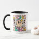 Un Petit Peu Dramatique Dramatique Super Dire Typographie Thé Café Mug présente le texte "Un Petit Peu Dramatique" dans la typographie moderne sur un arrière - plan en damier rose avec fleurs super, boulons éclairants et un visage souriant. Conçu par Evco Studio www.zazzle.com/store/evcostudio