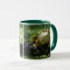 Ajoutez une touche de nature et de fantaisie à votre café, thé ou boisson chaude préférée avec cette tasse à thème de la faune ! Un certain nombre de petites grenouilles vertes couvertes d'algues ont été vues en train de fréquenter un étang juste à l'extérieur du Minnekhada Lodge, mais ce mignon petit garçon a pris le gâteau avec son insupportable "pose sur un tuyau". Photographié à la mi-août 2016. Basé sur la photographie originale de W.H. Sim. Tous droits réservés. Voir plus sur zazzle.com/walkswithnature