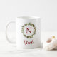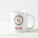 Tasses à café de Noël personnalisées personnalisées avec votre nom de famille et monogramme initial ou autre texte personnalisé. Ce design se compose d'une simple couronne d'aquarelle de verdure et de baies sèches, parfaite pour les vacances. Utilisez les outils de conception pour choisir n'importe quelle couleur arrière - plan, modifier les polices de texte et les couleurs ou télécharger vos propres photos pour créer un cadeau de Noël personnalisé d'un genre pour la famille et les amis.