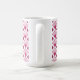 Cette tasse a un design art déco de diamants couleur betterave avec des lignes diagonales et des diamants de betteraves plus foncés sur un champ de blanc.