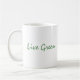 Montrez votre soutien à l'environnement et vivez un mode de vie vert avec cette tasse "Live Green". Un gros plan de feuilles d'été verdoyants après une pluie. ~ Partie de la collection verte. ~