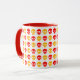 Pattern of red, orange, and yellow skulls on a white mug.