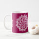 Ce mandala blanc est assis sur un arrière - plan rose foncé. La couleur est très riche et sophistiquée. Partie de la collection Brosya Mandala.