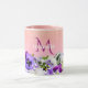 Mug Violet pansière fleurs sur pêche avec nom monogram