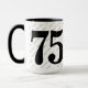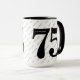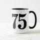 Le numéro noir 75 en gras est imprimé sur les deux côtés sur un motif arrière - plan en diagonale créé avec votre nom. Le numéro peut représenter votre âge ou tout autre 75e événement ou but que vous voulez célébrer. Il s'agit d'un souvenir cool pour atteindre votre anniversaire d'étape.