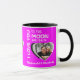 AMUSEZ-VOUS À LA LUNE mug photo en rose chaud, conçu avec une photo CUSTOMIZABLE en forme de coeur et un NOM(S) PERSONNALISABLE(S), qui peut être personnalisé avec votre propre photo et nom(s). (Lors du téléchargement de la photo, s'il vous plaît assurez-vous que les visages sont près du centre de la photo en raison de la 'trempe du coeur'.) Texte Je VOUS AIME À LA LUNE ET DE RETOUR en caractères serif et sans serif. La conception est répétée au verso (et liée) et il y a une image cardiaque plus petite au milieu. Cela ferait un grand cadeau pour les couples pour la Saint-Valentin, aussi pour les Anniversaires, les Anniversaires Mariages et Noël, etc.