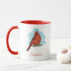 Destei's original hand-painted watercolor red cardinal bird perched on a small pine tree branch against a light blue sky. There is also a personalizable text area under the image ideal for a name, for example.