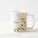 Wedding Rustic Golden Geometric White Floral Peach Coffee Mug. Unique, beautiful, modern design. Easy to be personalized. Font style, size and colors can be changed. Matching items available.