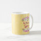 Celebrate the coming of spring with this colorful design featuring pink tulips, white daffodils, yellow stripe background and the words "Welcome Spring!".