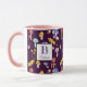 Aquarelle adorable champignons sur violet foncé avec votre lettre et nom monogramme personnalisé.