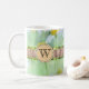 Monogramme avec bande décorative élégante sur une image estivale douce de Daisy blanc dans un pré vert. Une grande pièce décorative pour la maison. Une idée cadeau parfaite pour toute occasion.