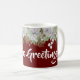 Belle guirlande en bordure supérieure de poinsettias blanc aquarelle et autres feuillage saisonnier sur arrière - plan rouge canneberge avec texte blanc personnalisable.