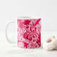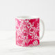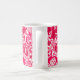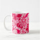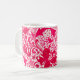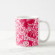 Tasse à café dans une vintage impression florale William Morris de lys stylisés et d'Irises, numériquement rehaussée et colorée, dans les tons clairs à rose fuchsia profond et vin rouge profond sur un arrière - plan blanc