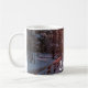 Mug Winter sunset in pine forest near sea